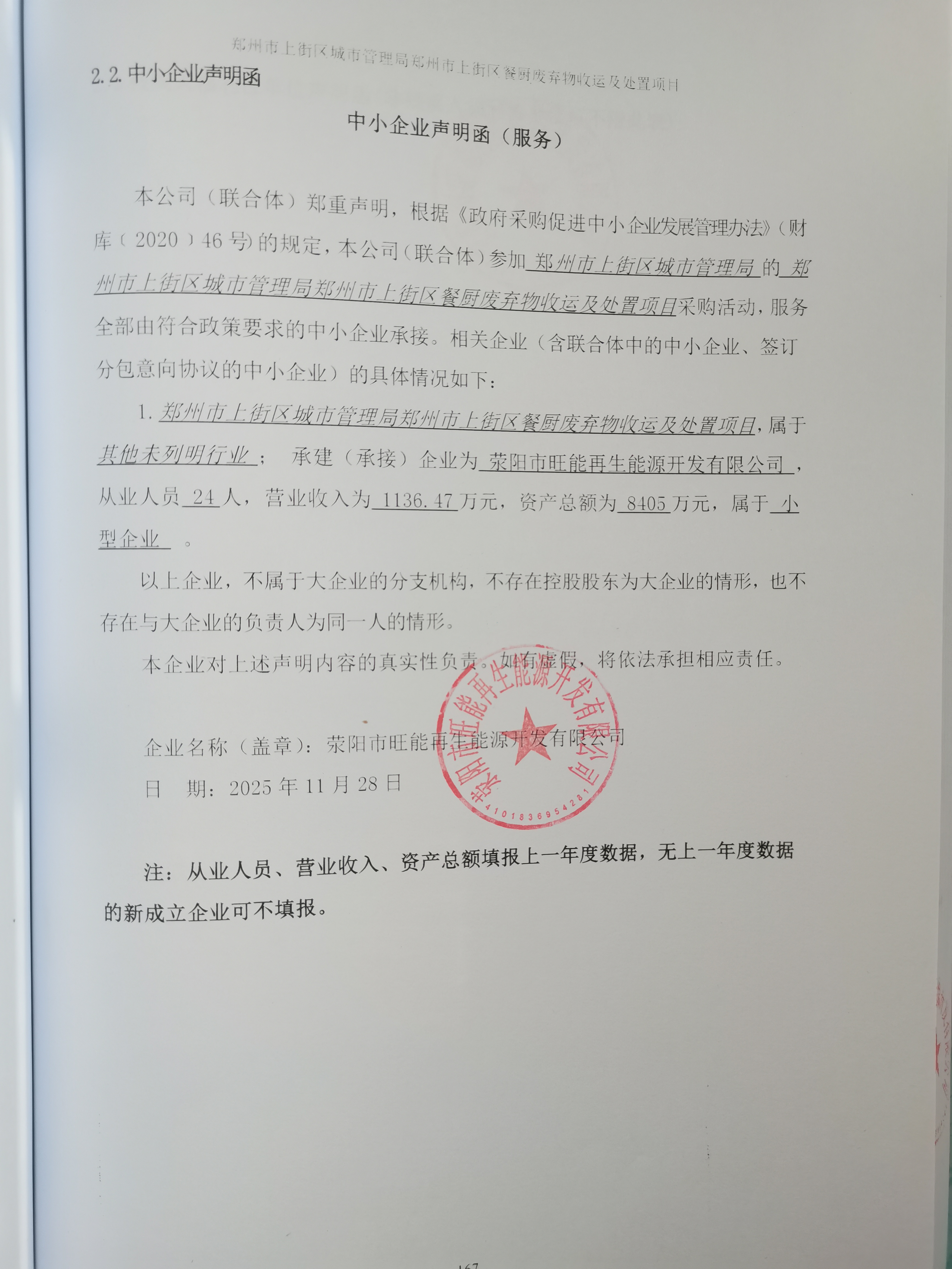 郑上财-单一-[2025]-1 对郑州市上街区区域内的餐厨废弃物(约20吨/天)进行收运及处置。 ******有限公司 荥阳市园区付2号路与荥王路交叉口西北侧 1,758,497.00 评审价格:******