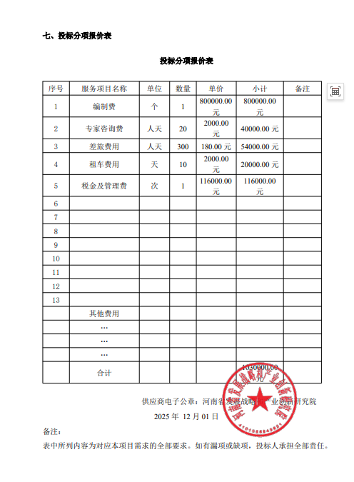 1 ******委员会周口市国民经济和社会发展“十五五”规划编制项目 详见附件 详见附件 自合同签订之日起180日历天 合格,符合国家、行业相关标准,满足采购人要求,做好提交市 人大审议准备