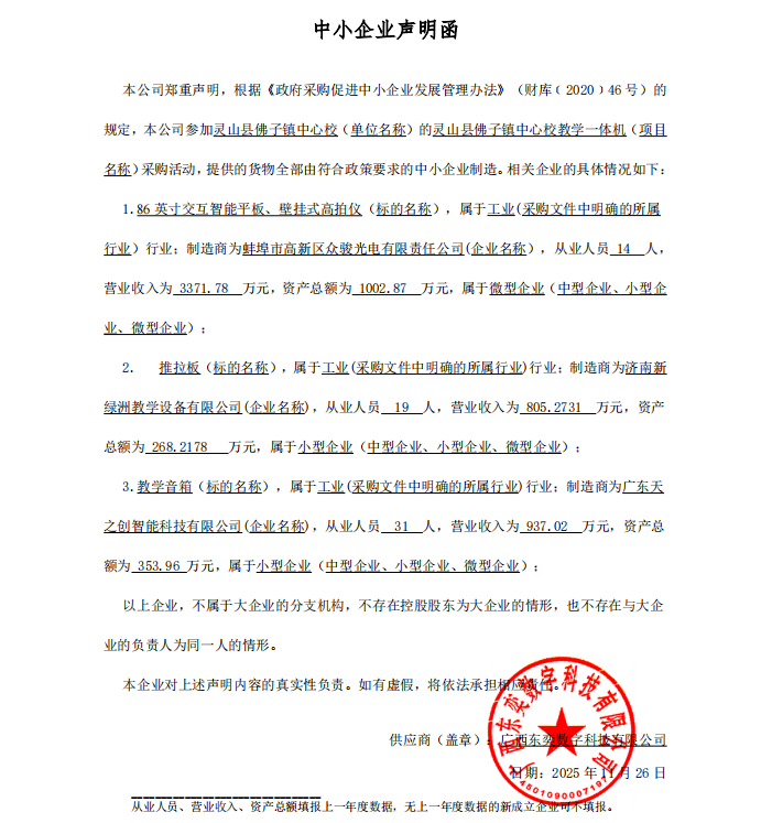 | 1 | 灵山县佛子镇中心校教学一体机 | 86英寸交互智能平板 | 众骏 | ZJB862-D | 34台 | 13900 |