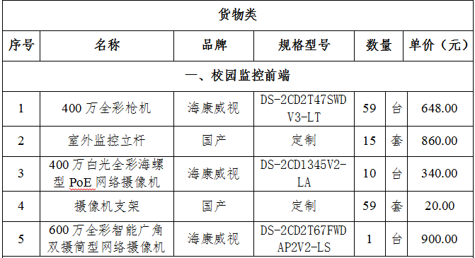 二、项目名称:******学校校园安防监控系统点位增补建设项目