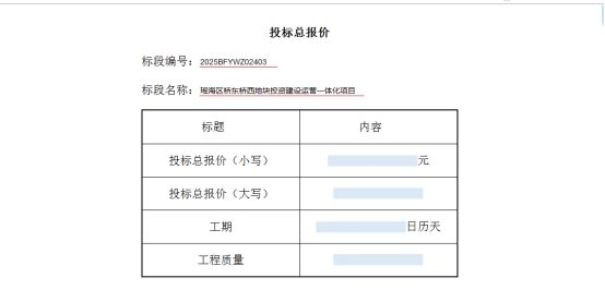 答:投标总报价填写建设投资服务费(不含土地费用)单价(大写/小写),工期填写总服务期对应的日历天。