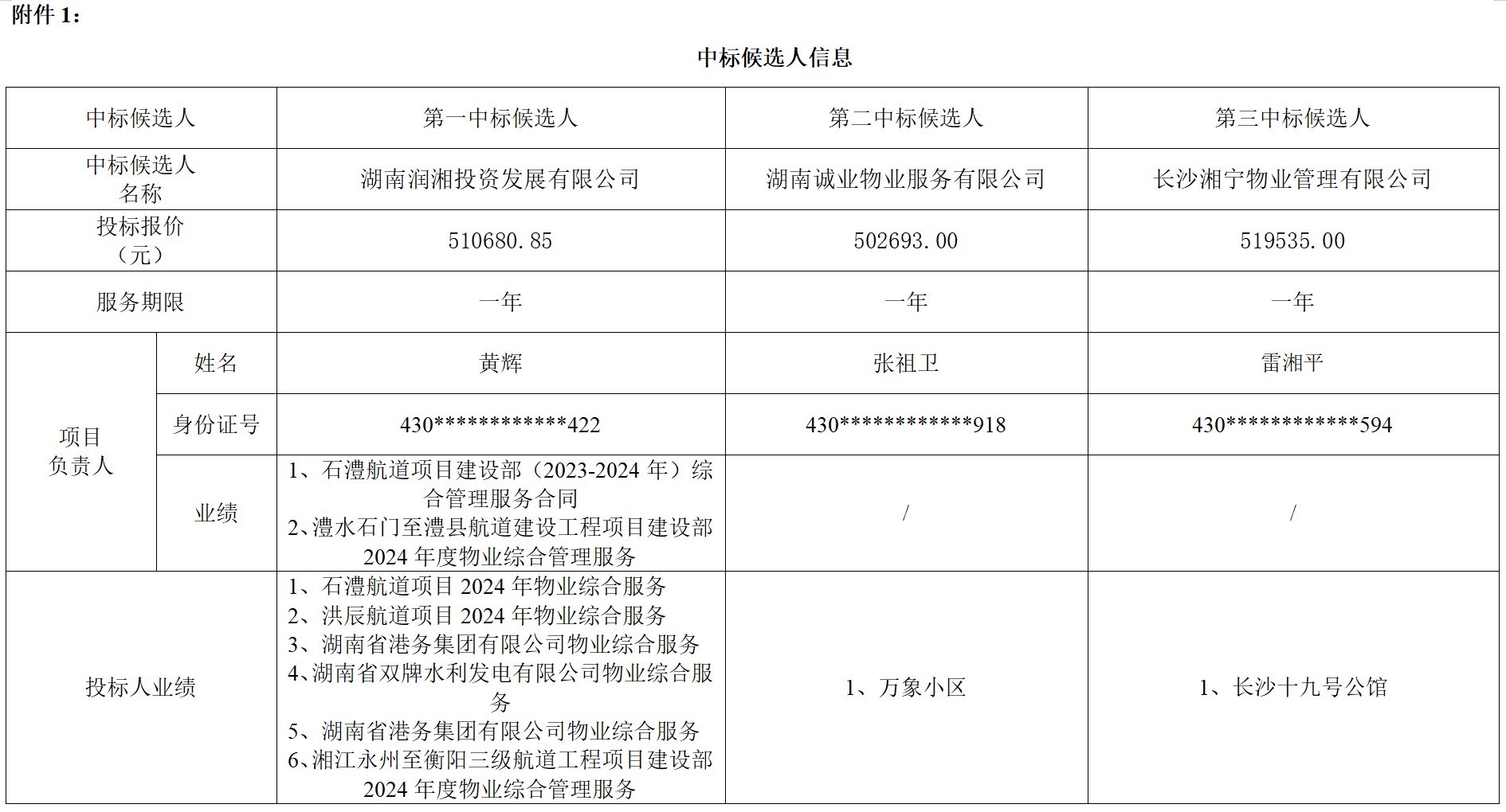附件1:中标候选人信息及附件2:不合格投标人名单