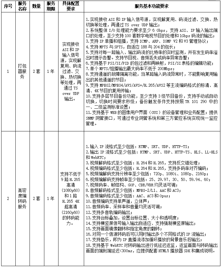 具体技术参数要求如下,各相关供应(服务)商需根据要求提供服务。