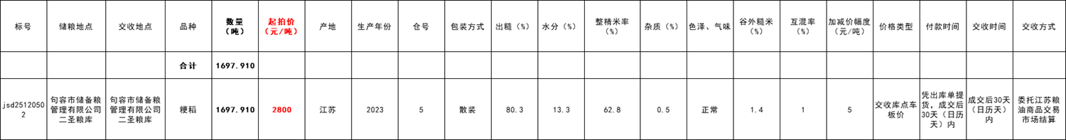 12月5日江苏(句容)地方粳稻竞价销售交易公告-句容市储备粮管理有限公司