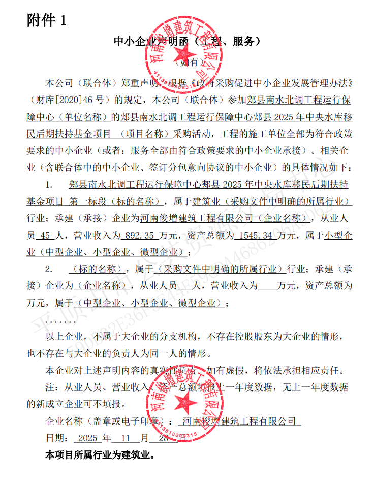 2、采购项目名称:郏县南水北调工程运行保障中心郏县2025中央水库移民后期扶持基金项目
